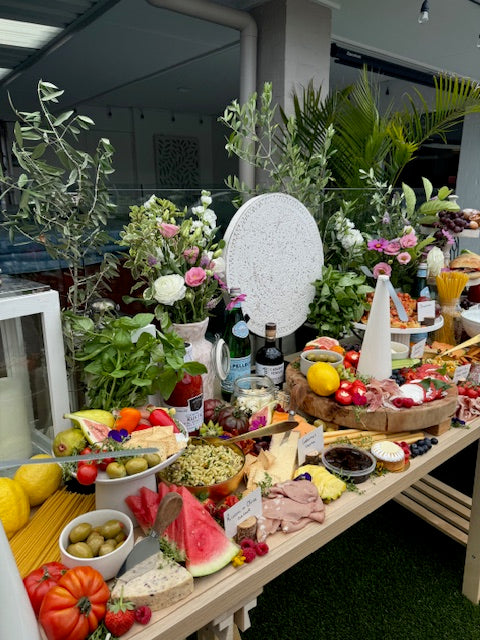 Step into a vibrant evening of La Dolce Vita with our Italian-Themed grazing table, where the essence of Italy comes to life in every bite. Immerse yourself in cobblestone streets with the aroma of fresh basil and rich tomato flavours.
