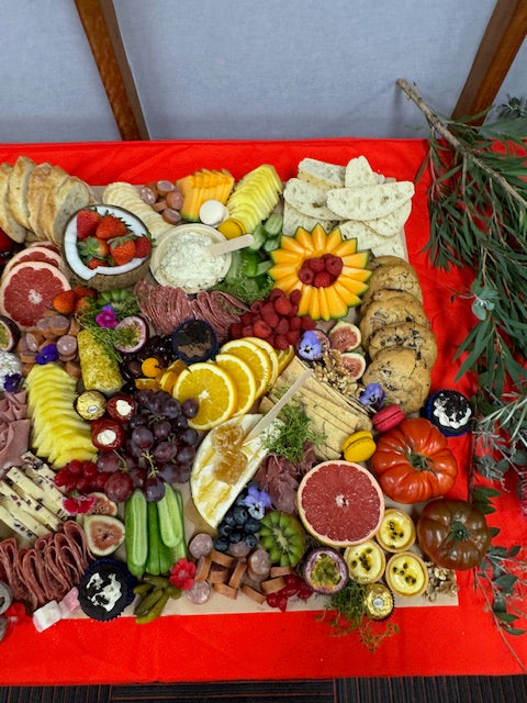 we source quality produce which includes an assortment of soft & hard cheeses, gourmet dips, cured meats, seasonal fruits, vegetable sticks, artisanal French breads, sweets such as cookies, brownie, caramel slice, coconut ice, chocolate coated pretzels & macarons, antipasto ingredients, artisan crackers and much more.
