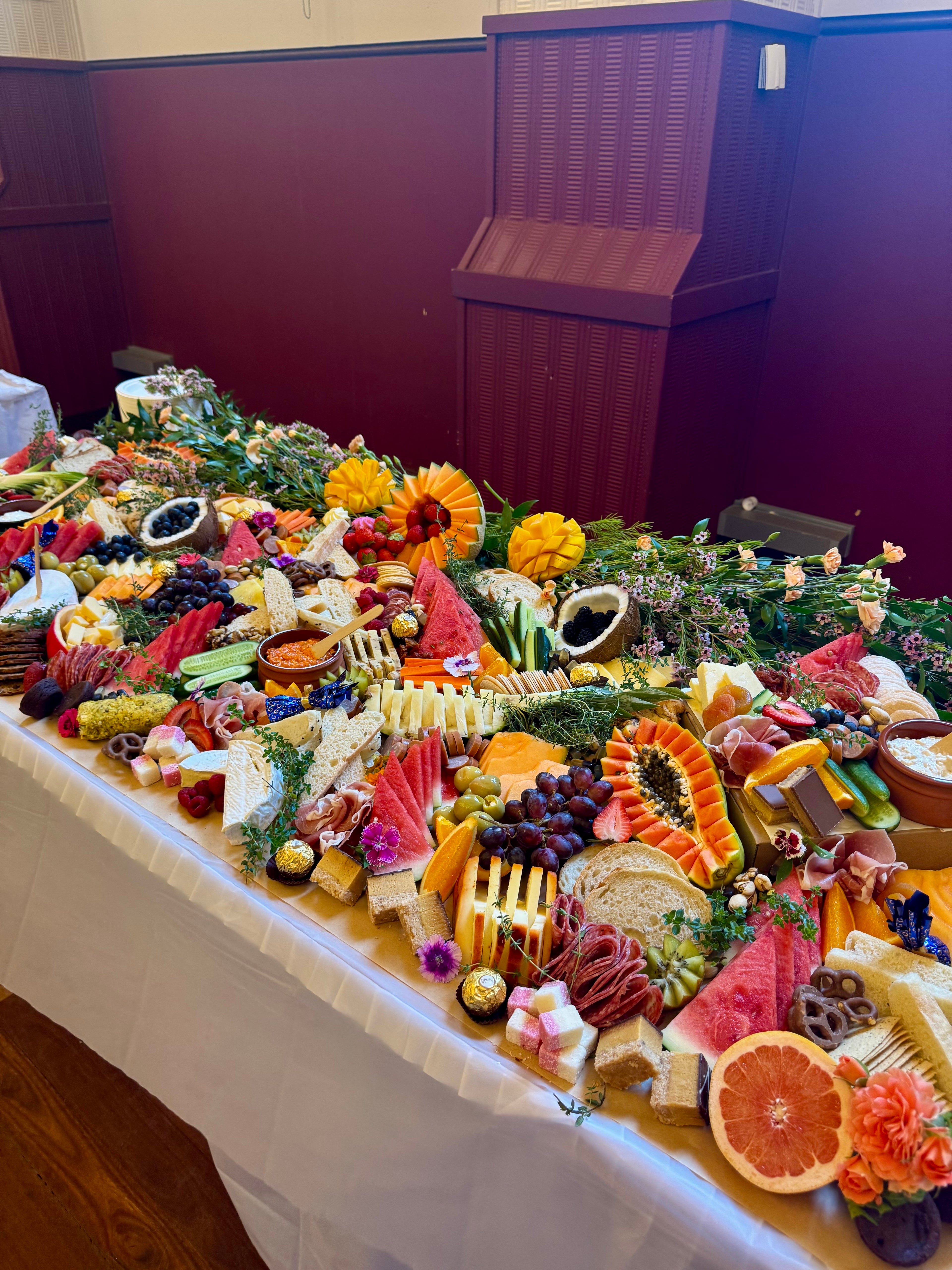 We arrive at the venue roughly 1 hour before the guests arrive. This gives us time to bring in all of our equipment, set up the display, take some gorgeous photos and remove all of our packaging and rubbish.