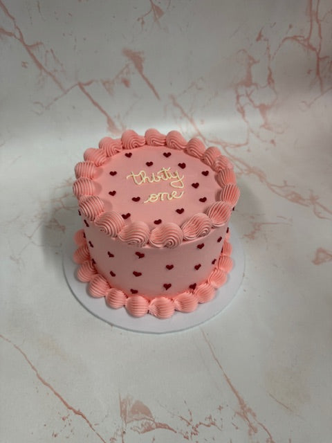 Each cake comes with a standard bottom, middle and top vintage piping. Our cakes come with hand drawn messages on the surface. Please leave a note in the checkout section with your personalised message.